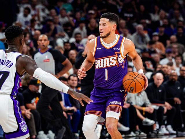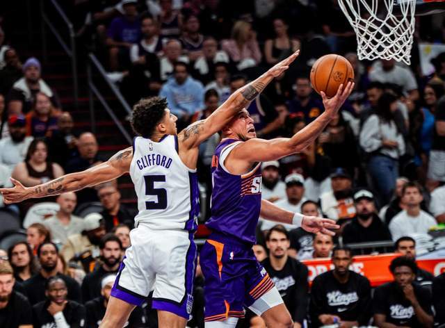 開局上來,雙方都相互試探,布克打控衛(wèi),他和伊戈達(dá)羅擋拆內(nèi)切中距離打進(jìn),隨后又助攻阿倫命中三分,狄龍持球沖擊拿下2分。國王方面拉文和德羅贊雙槍開火,雙方從僵局到國王領(lǐng)先10分,因?yàn)槊煽诉@一點(diǎn)火力很強(qiáng),他在國王首發(fā)下場休息時(shí)扛起球隊(duì)。第二節(jié)雙方繼續(xù)對(duì)攻,布克連續(xù)殺傷造犯規(guī),拉文連得16分,國王很快就領(lǐng)先17分。